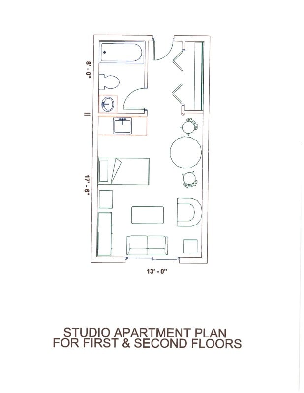 - Spacious Layout: Studios feature a large closet, a private bathroom, and a mini kitchenette, offering the ideal space to house the comforts of home while being easy to maintain.