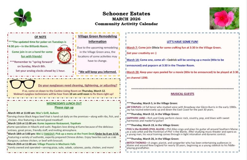 March 2026 Activity Calendar